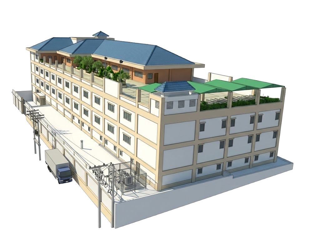 อาคารโรงงาน–ออฟฟิศ 4 ชั้น พร้อมพื้นที่ผลิต–คลังสินค้า และโซนพักอาศัยครบวงจร